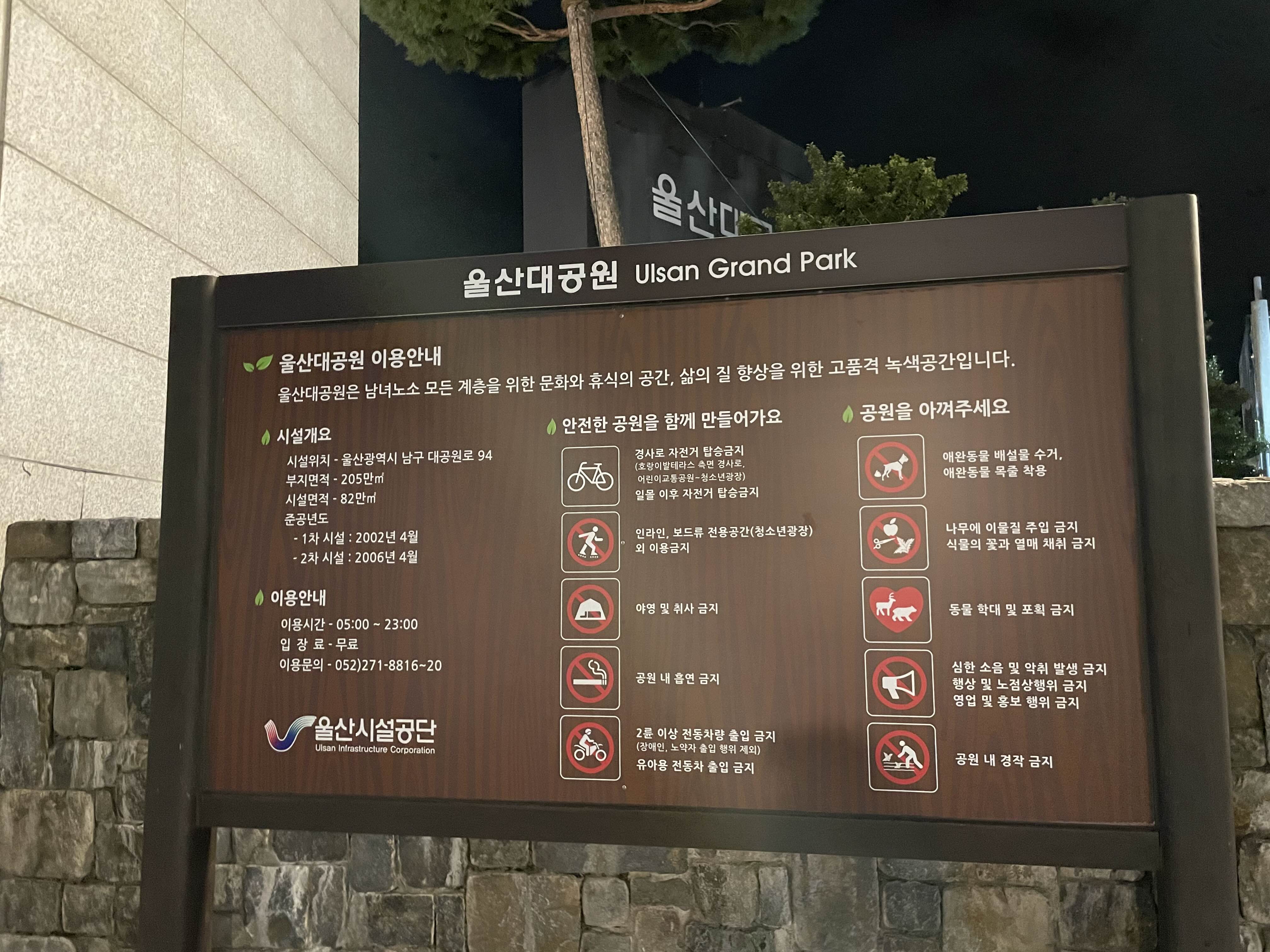 울산대공원은 공원크기가 엄청 넓어서 정확한 문 이름으로 네비 치시는걸 추천드립니다 (정문, 남문 등 여러개의 문)