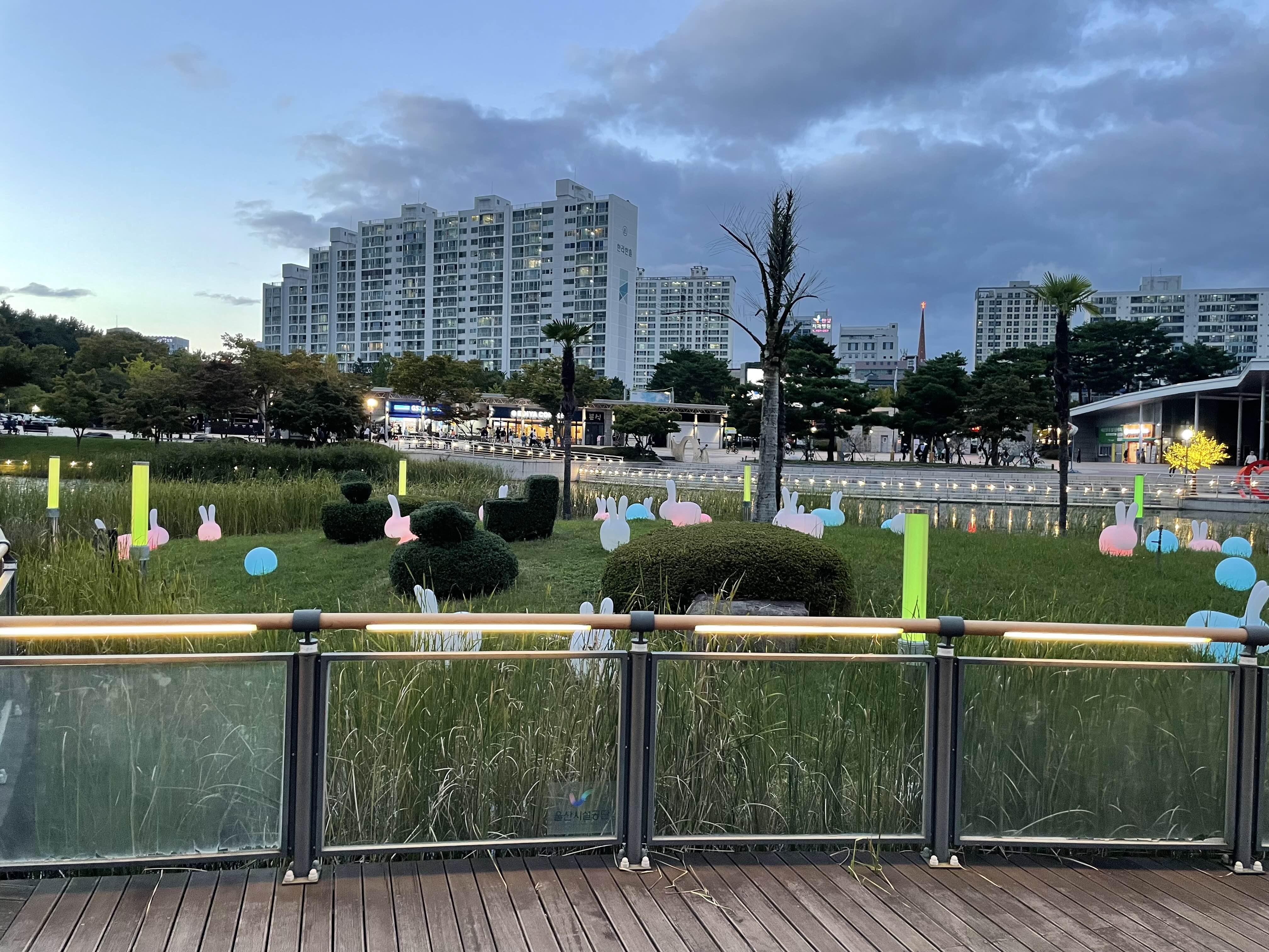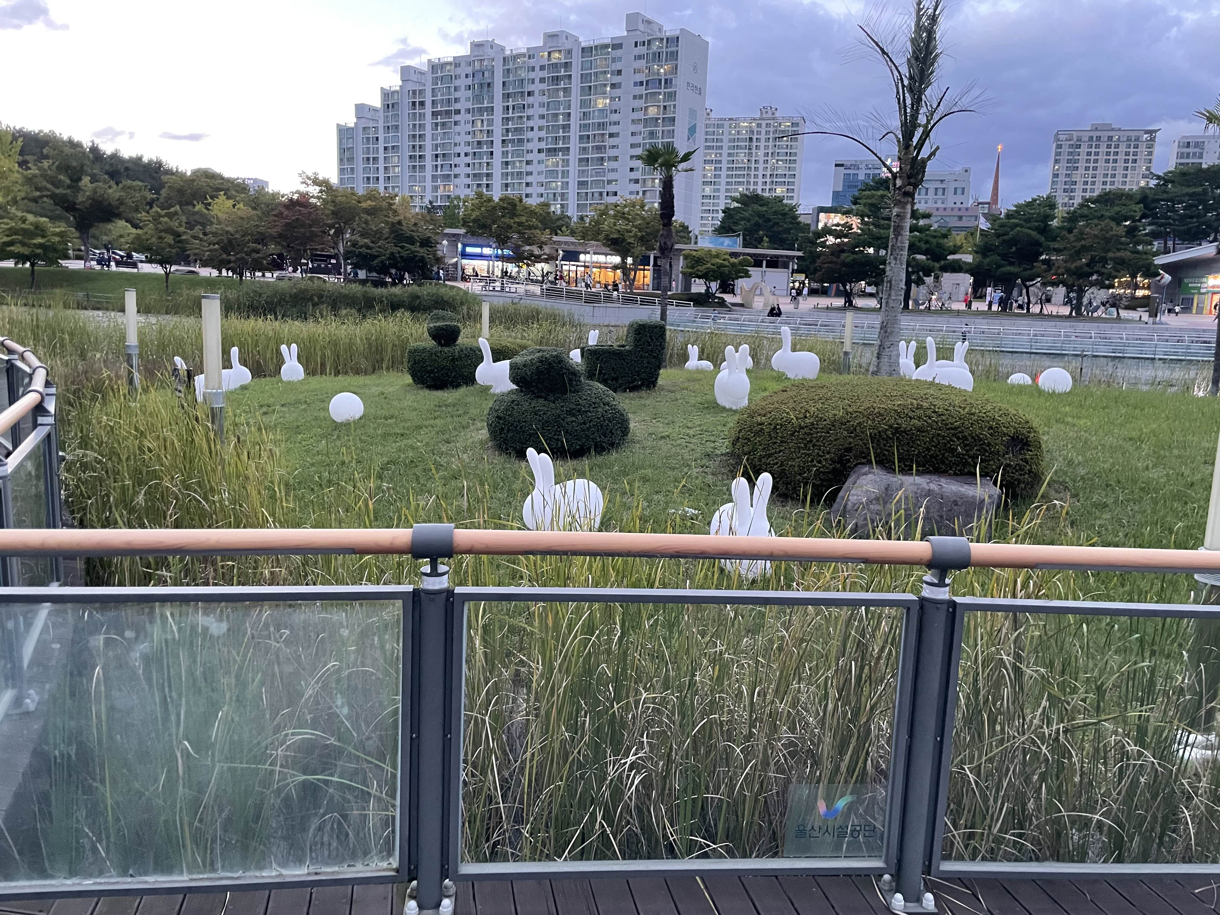 불 들어오기전에는 모두 흰토끼였는데, 조경이 들어오자 색색이 토끼들로 변신.