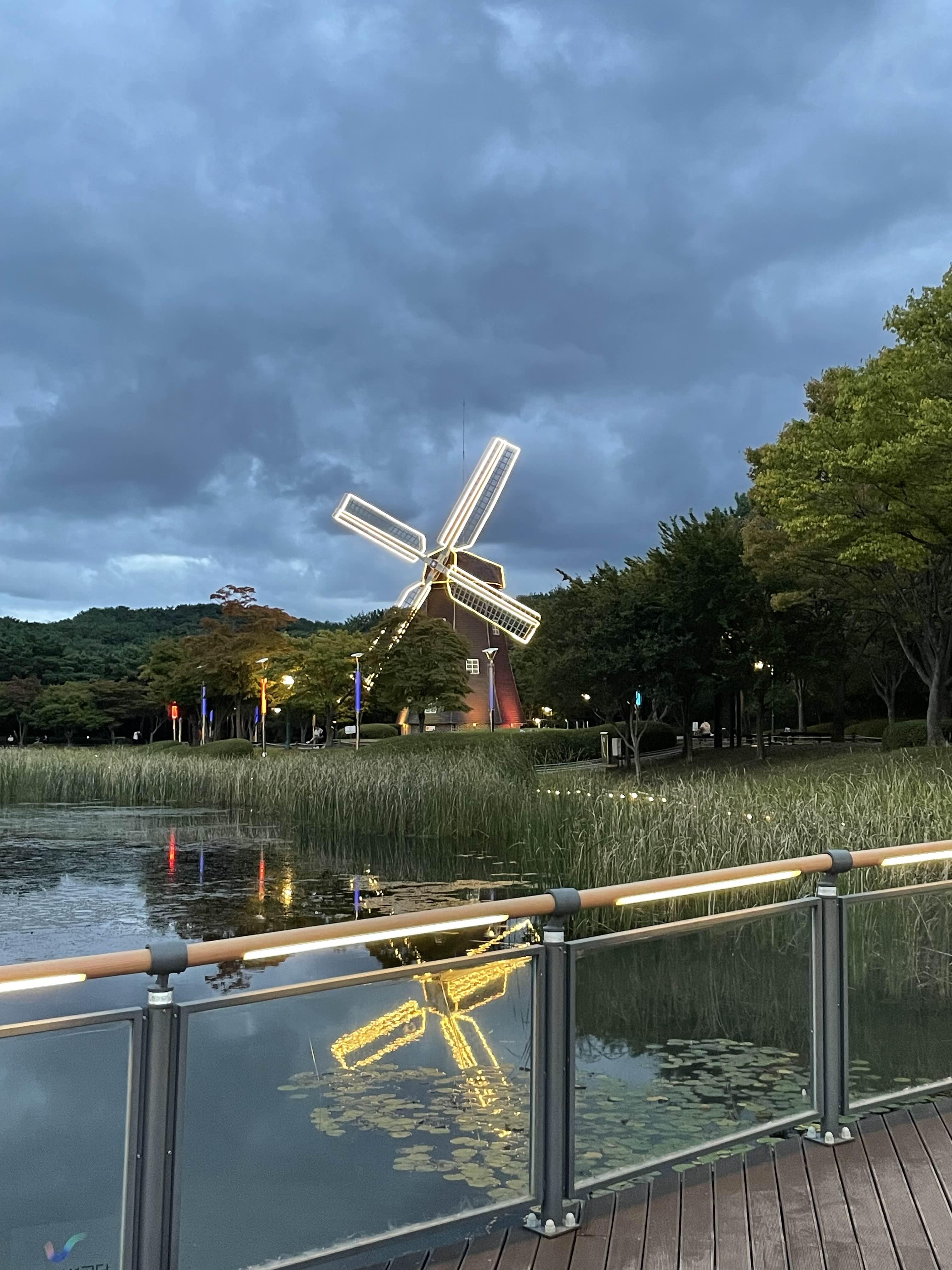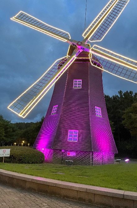이렇게 큰 풍차도 색깔이 바뀌면서 날개가 돌아가요.  오즈의 마법사가 갑자기 생각나는,,,