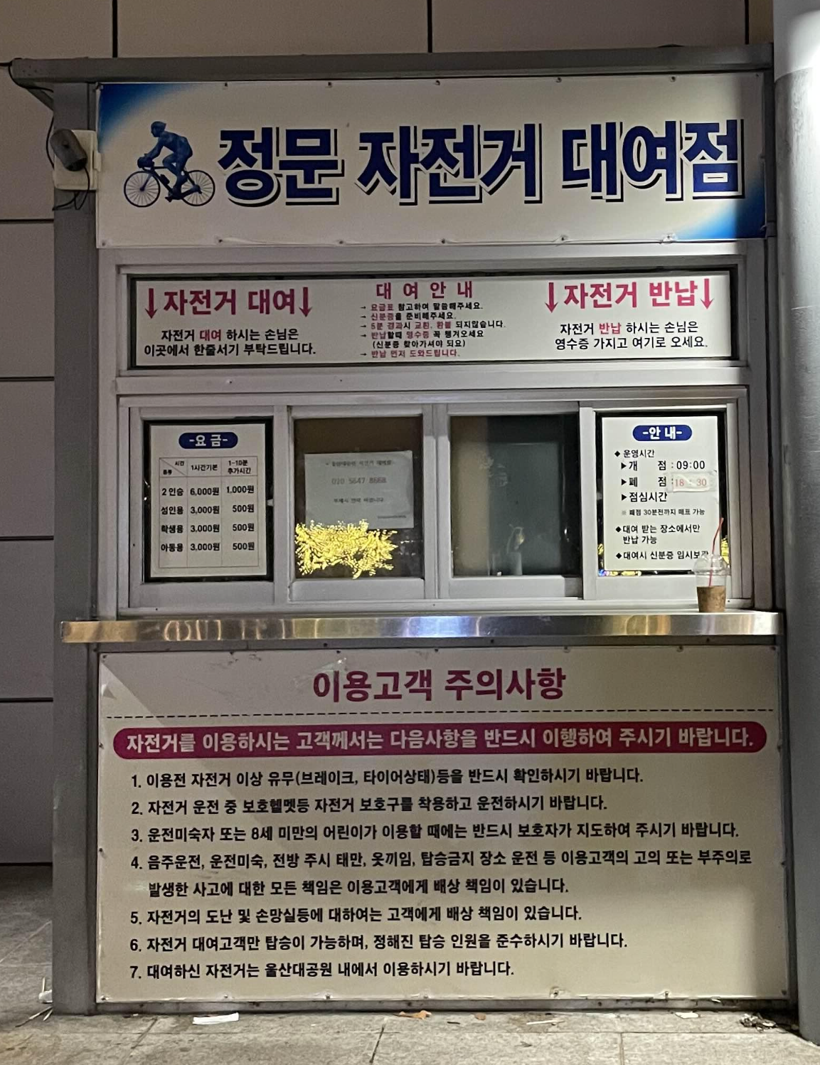 출입구 에서 왼쪽~ 자전거 대여점이 있어요.  9am ~ 6:30pm운영.