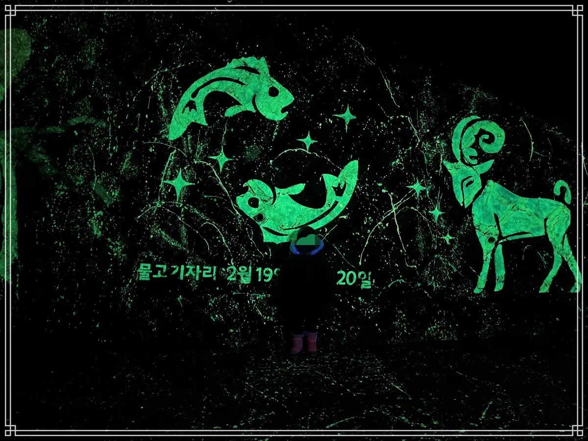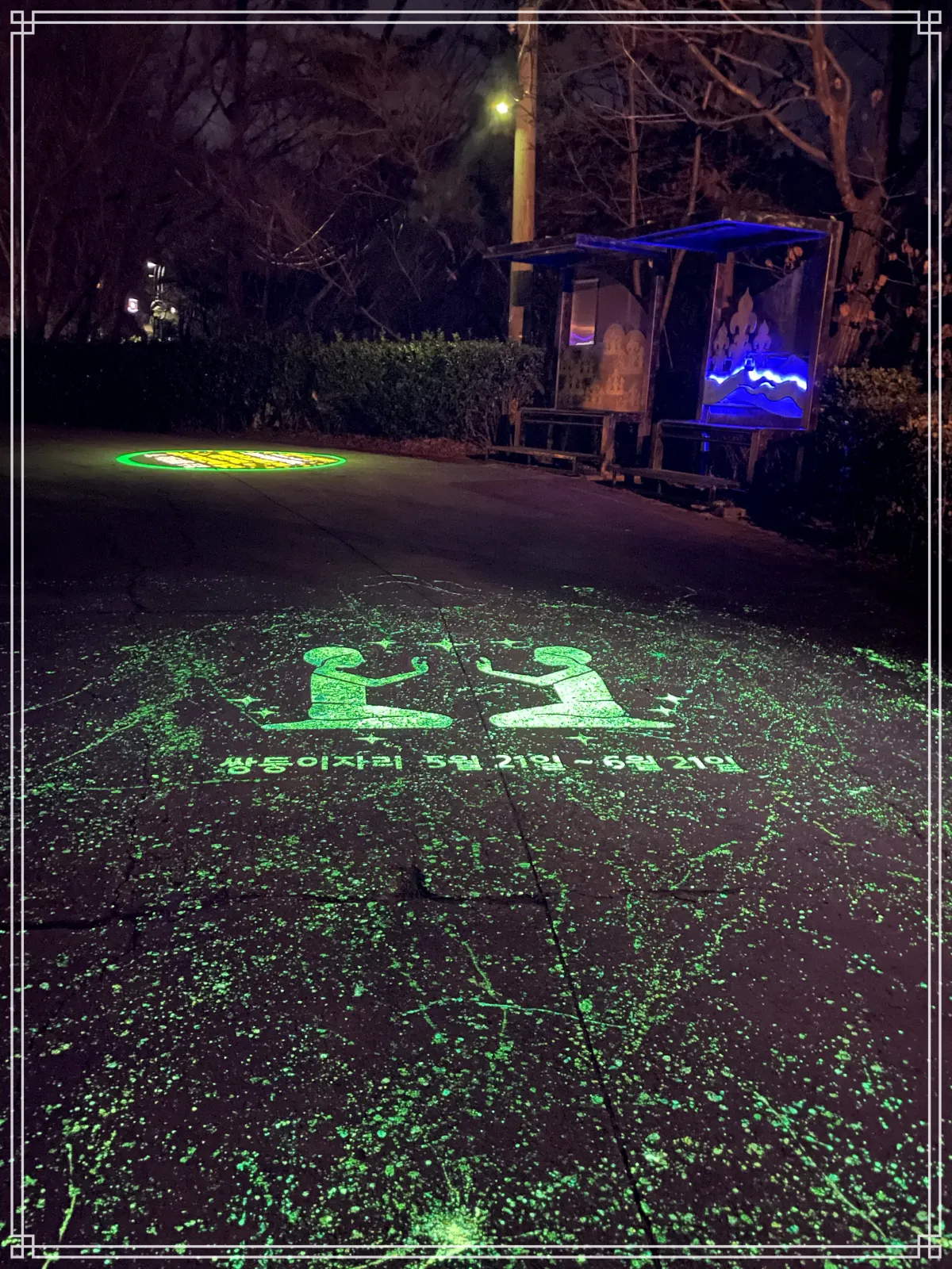 길 중간중간에 별자리 소개, 생일별 별자리를 LED 야광 불빛으로 바닥에 그림이 그려져 있습니다.