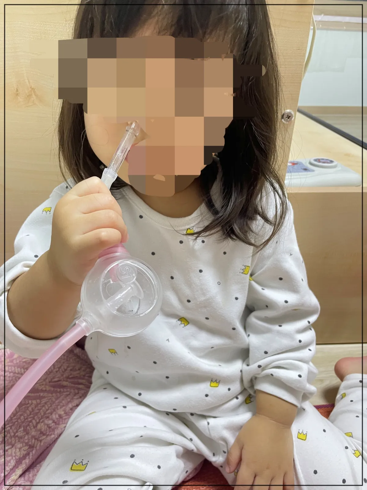 하지만 점점 익숙해져서 스스로 노즐을 코에 넣고 콧물을 뺍니다.