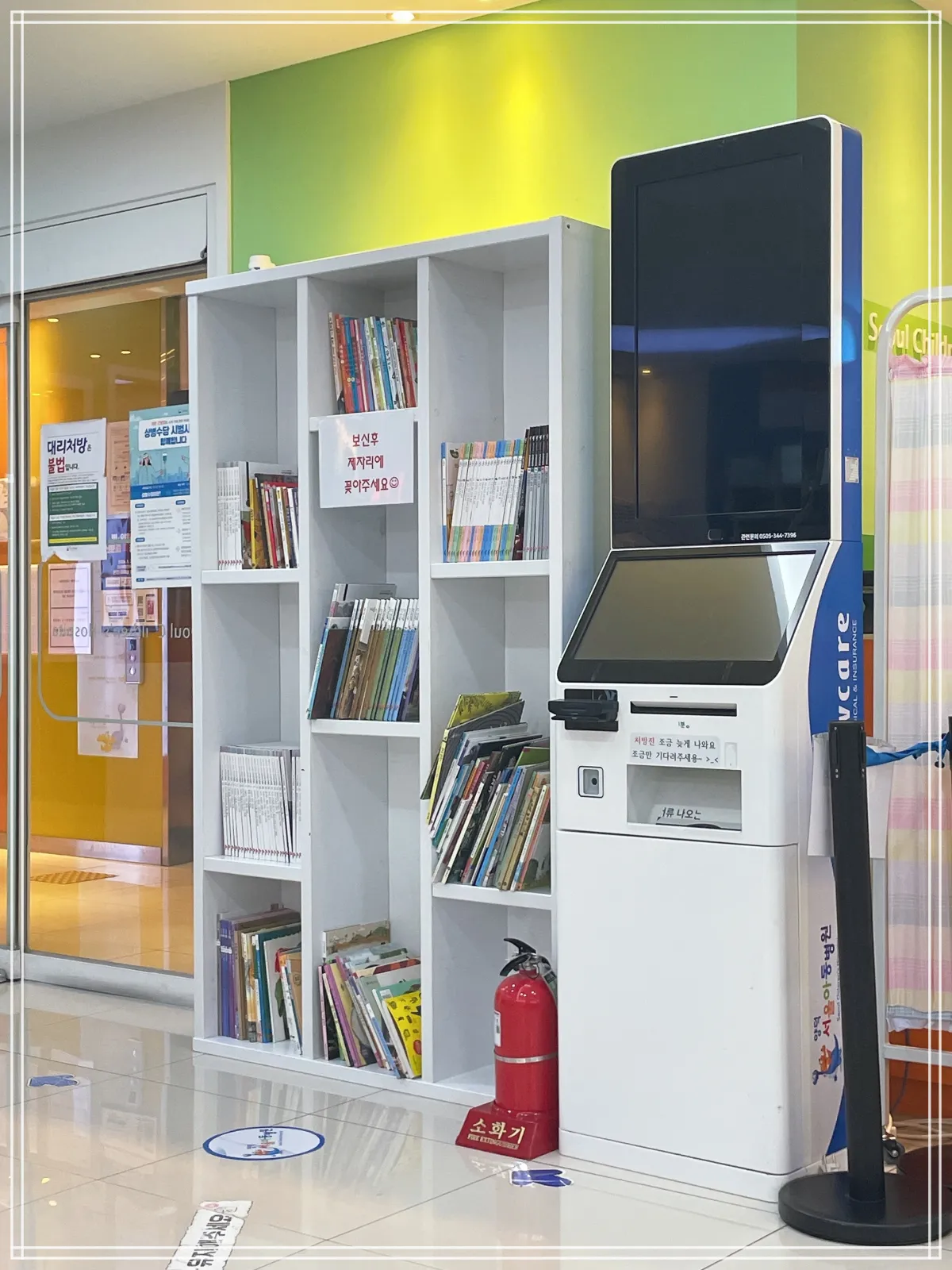 책 보는 친구 어디있니? 대기시간에 그만큼 핸드폰, 티비 보는 아이들이 많은데, 잠깜이라도 책을 펼칠 수 있도록 해주는 이런공간 좋아요~