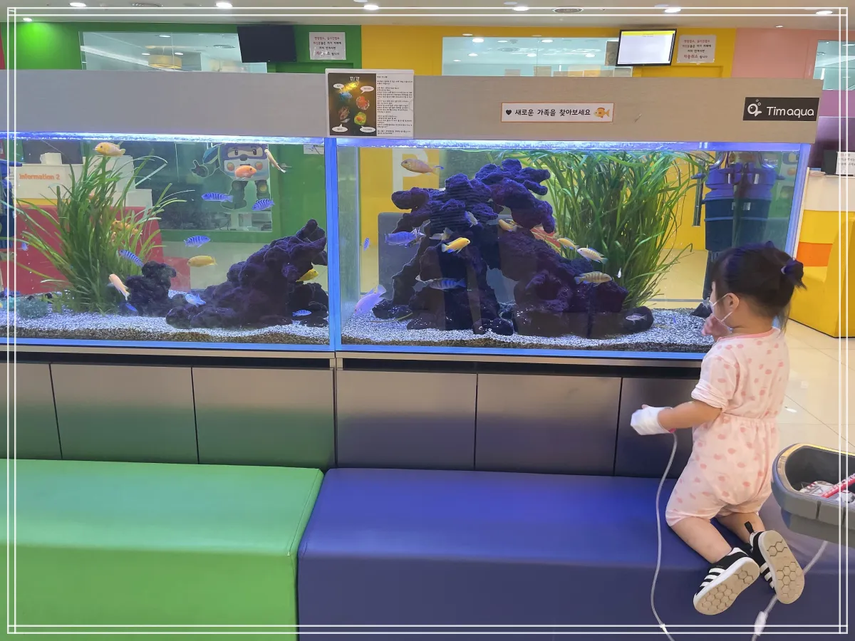 저희도 입원해서 심심할때 외래 내려가서 물고기 색깔 찾기 놀이도 하고, 생김새 관찰도 하면서 잠시 놀고 왔습니다~