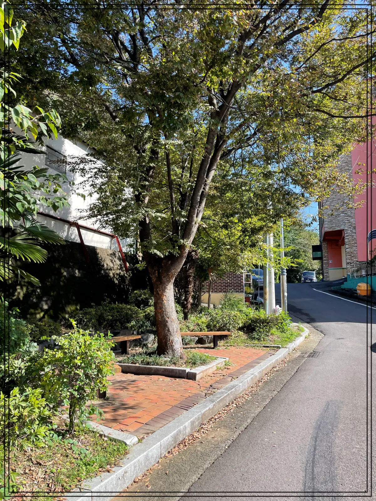어릴 적 주택 동네에서 보던 나무 같아서 추억 한번 떠올리며 걸어갑니다~