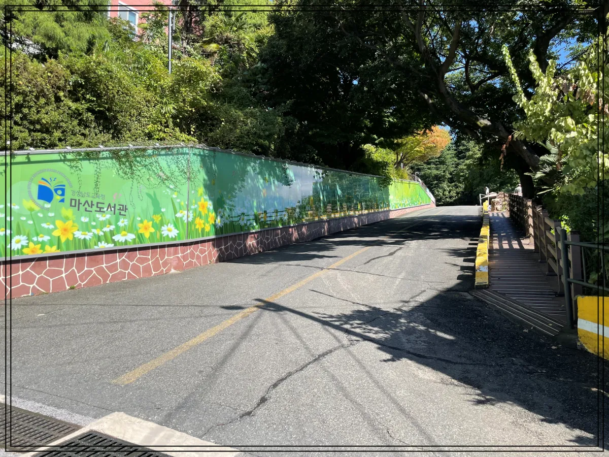 마산도서관 올라가는 입구, 경사가 있어서 걸어가시는 분은 등산의 기분을 느낄 수 있습니다.