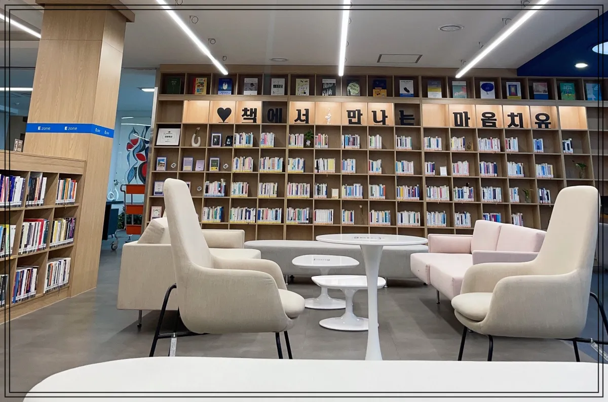 책도 다양하지만, 쇼파 색깔도, 모양도 다양하게 있어서 다다닥 붙어 앉는 공간이 아닌