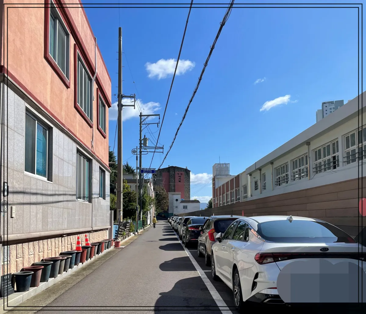 근처 합포초등학교 운동장 정문으로 주차해 주세요~