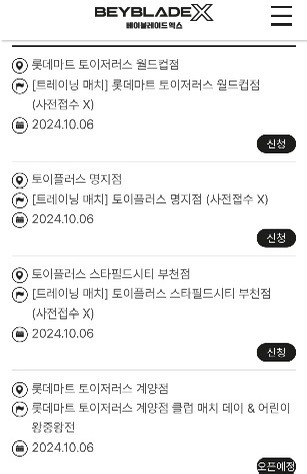 베이블레이드X 공식홈피에 일정 조회하시면 나와요~